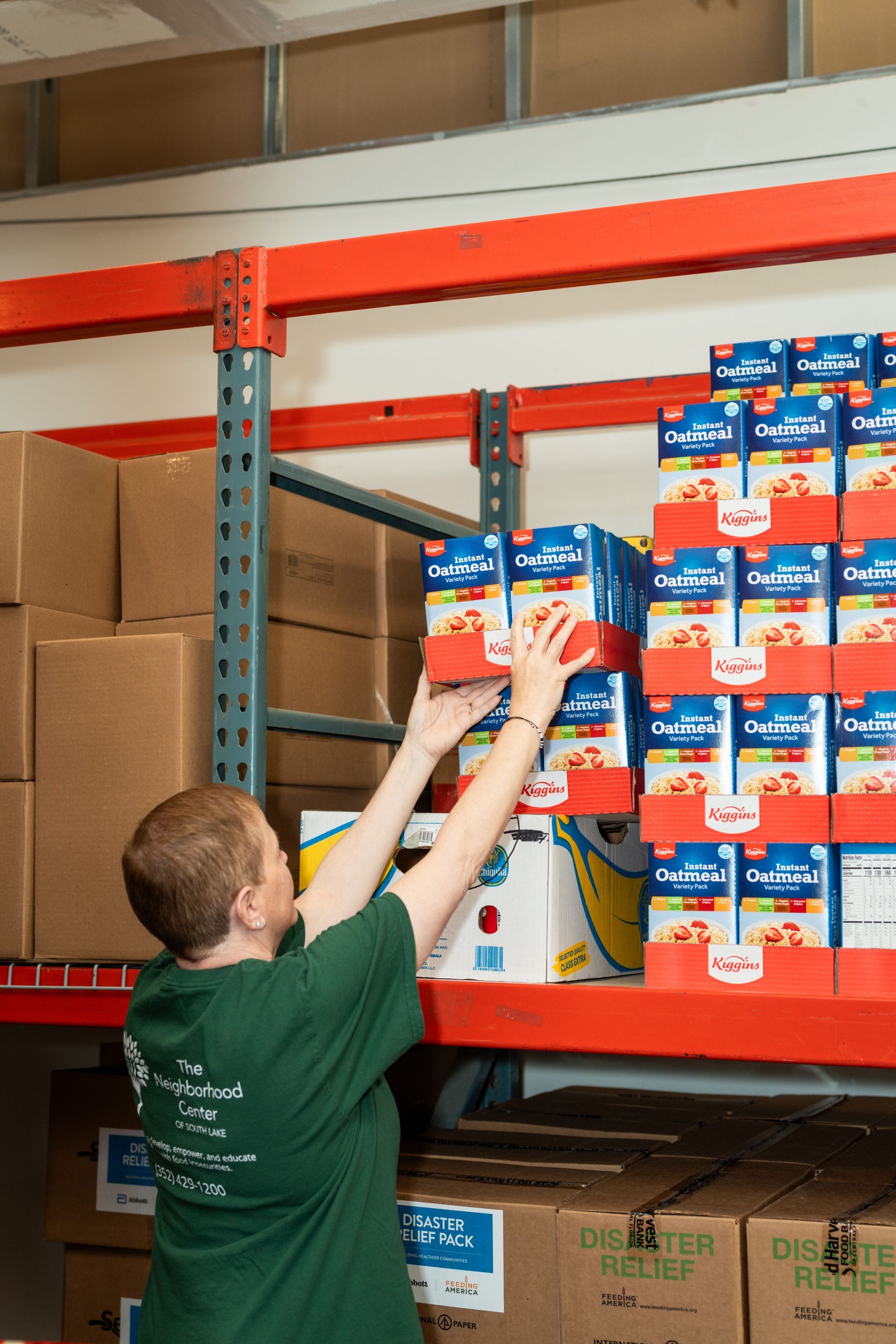 The Neighborhood Center of South Lake (TNC) is a designated 501c3 organization and operates entirely on donations. Time, Talent, and Treasure are equally important to fulfill our mission. 82% of all the food we provide to families is donated by our Grocery Alliance Partners, Second Harvest Food Bank, Community Partners, Small Businesses, and Individuals; the rest we must purchase.